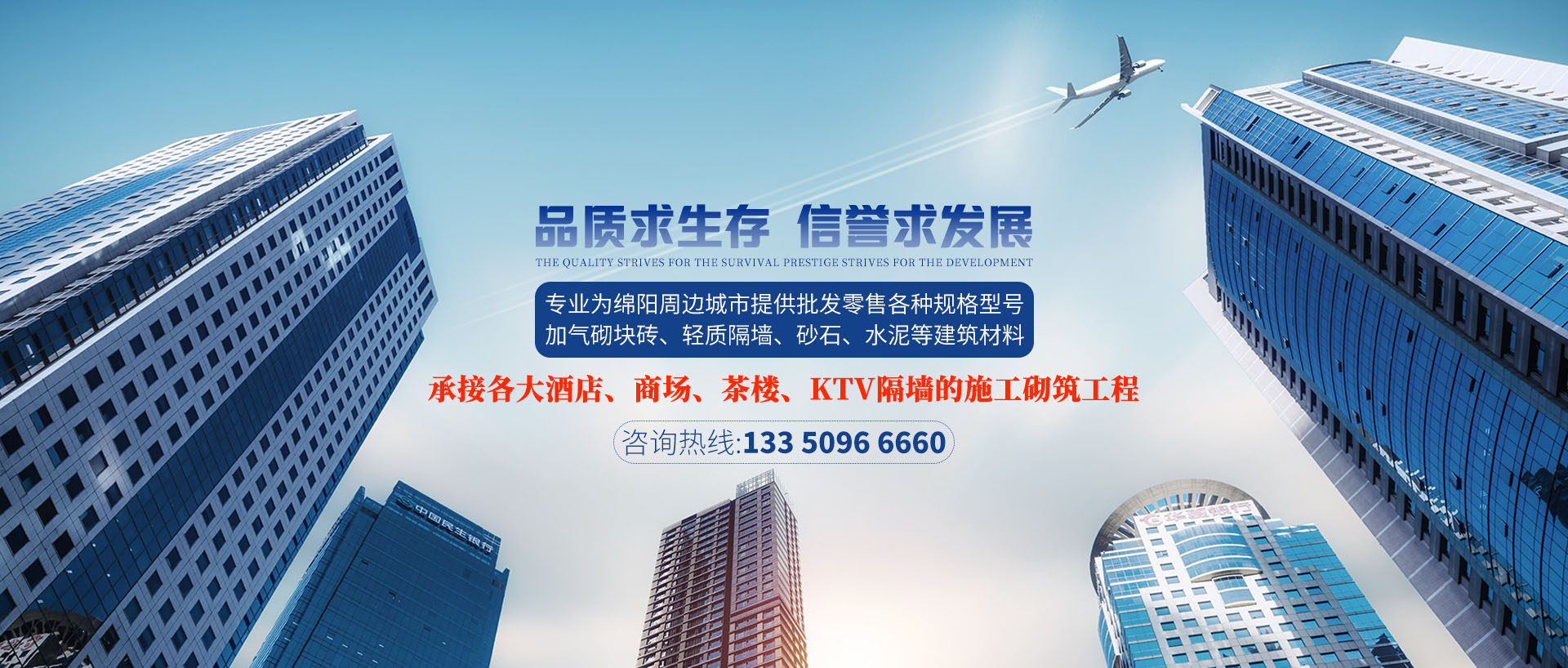 綿陽(yáng)誠(chéng)航建材有限公司是一家集銷(xiāo)售與施工砌筑為一體的輕質(zhì)建筑材料公司。專(zhuān)業(yè)為綿陽(yáng)周邊城市提供批發(fā)零售各種規(guī)格型號(hào)加氣砌塊磚、輕質(zhì)隔墻、砂石、水泥等建筑材料。承接各大酒店、商場(chǎng)、茶樓、KTV隔墻的施工砌筑...